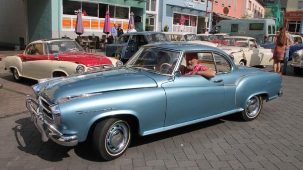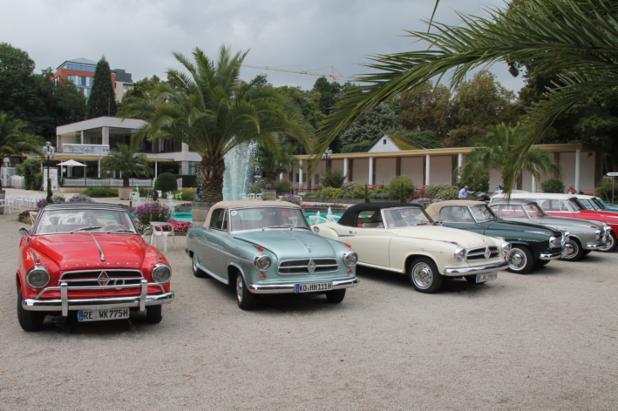 Im südländisch anmutenden Kurpark von Bad Neuenahr gaben Borgwards Produkte ein tolles Bild ab.