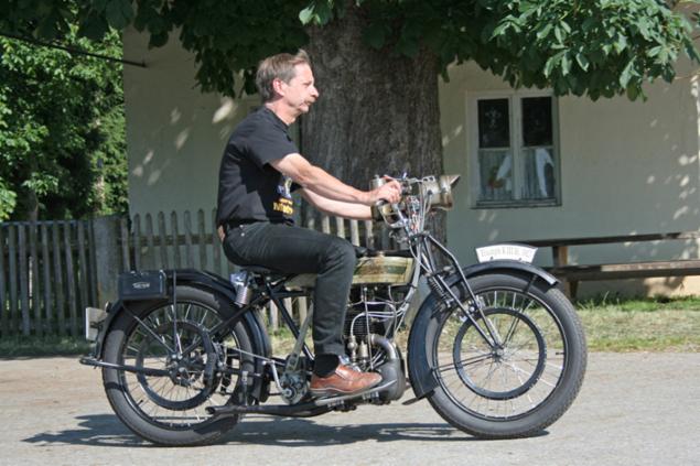 Diese K III Bj.1927 mit viel Patina darf zu Vorführzwecken auch ohne Helm gefahren werden
