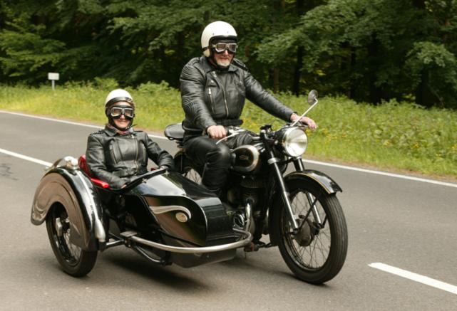 Freudiges Paar auf BDG 250 Bj. 1950 mit Steib LS 200