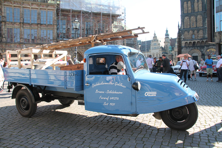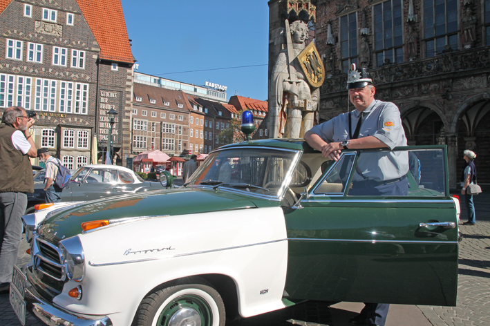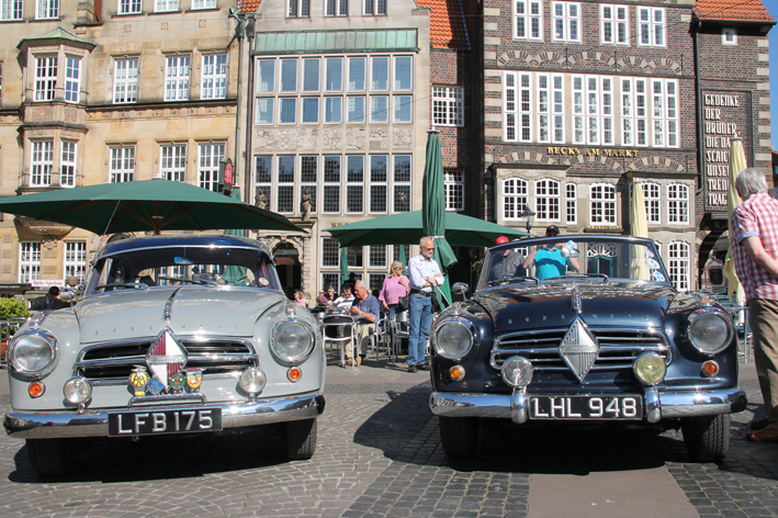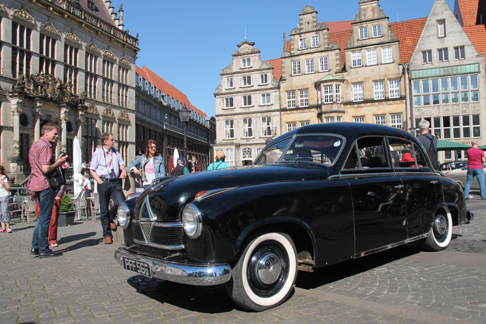Am Sonntagmorgen durften die Borgwards auf den Marktplatz vor dem Historischen Bremer Rathaus.